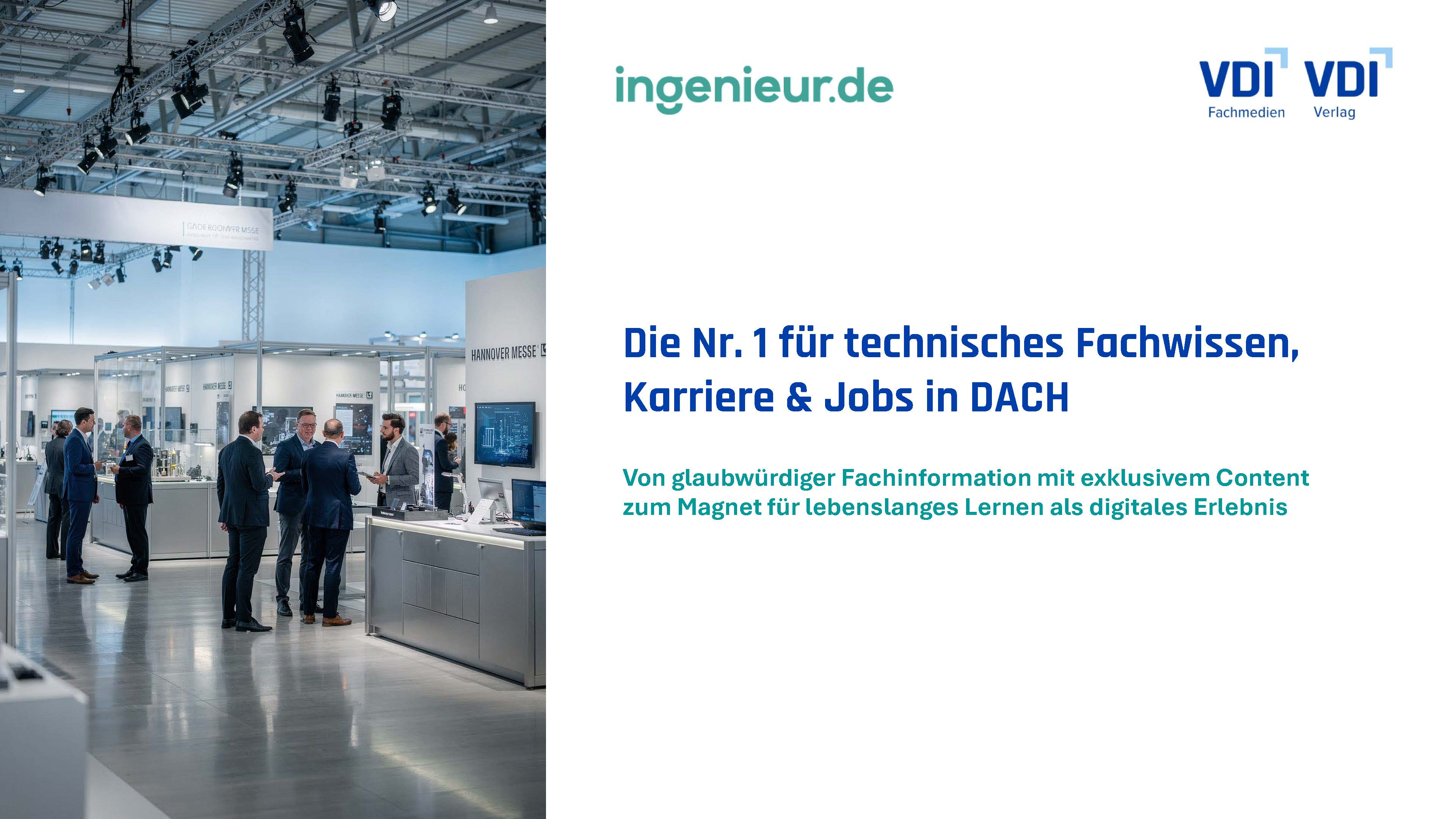Der VDI Verlag ist das führende Medienunternehmen für Ingenieur*innen und technische Fach- und Führungskräfte. Mit VDI nachrichten und INGENIEUR.de erreichen Sie Ingenieur*innen und das technische Top-Management reichweitenstark auf allen Kanälen.