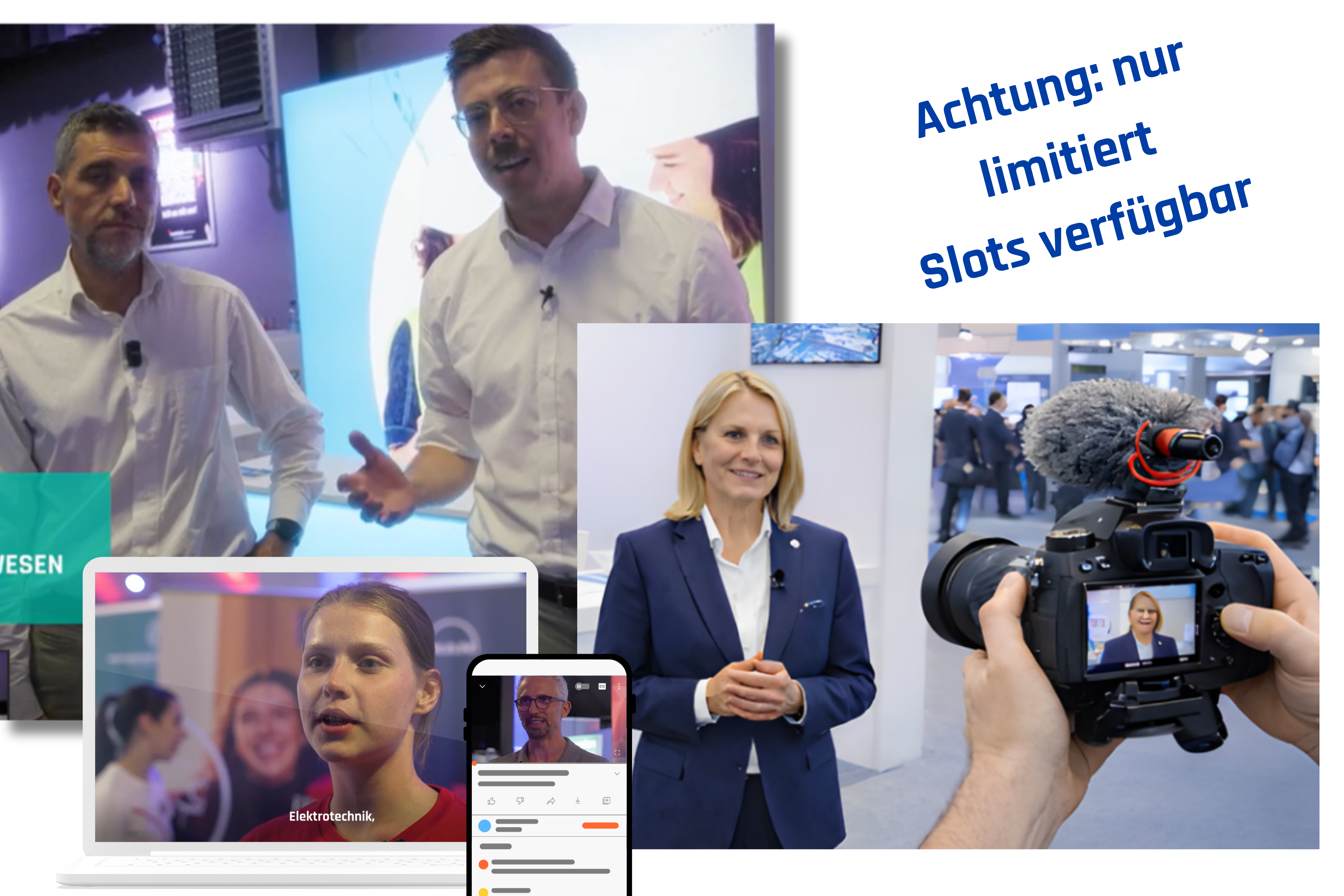 Mit kurzen, authentischen Videoformaten (60–90 Sekunden) präsentieren Sie Ihr Unternehmen, Ihre Kultur und Ihre Recruiting-Strategien auf eine persönliche und aufmerksamkeitsstarke Weise. Unser Team kommt direkt zu Ihnen an den Messestand – für Sie entsteht kein zusätzlicher Aufwand. So entstehen echte Einblicke aus dem Messegeschehen, die Ihr Unternehmen nahbar und modern positionieren - und das bereits ab 1.000 EUR.